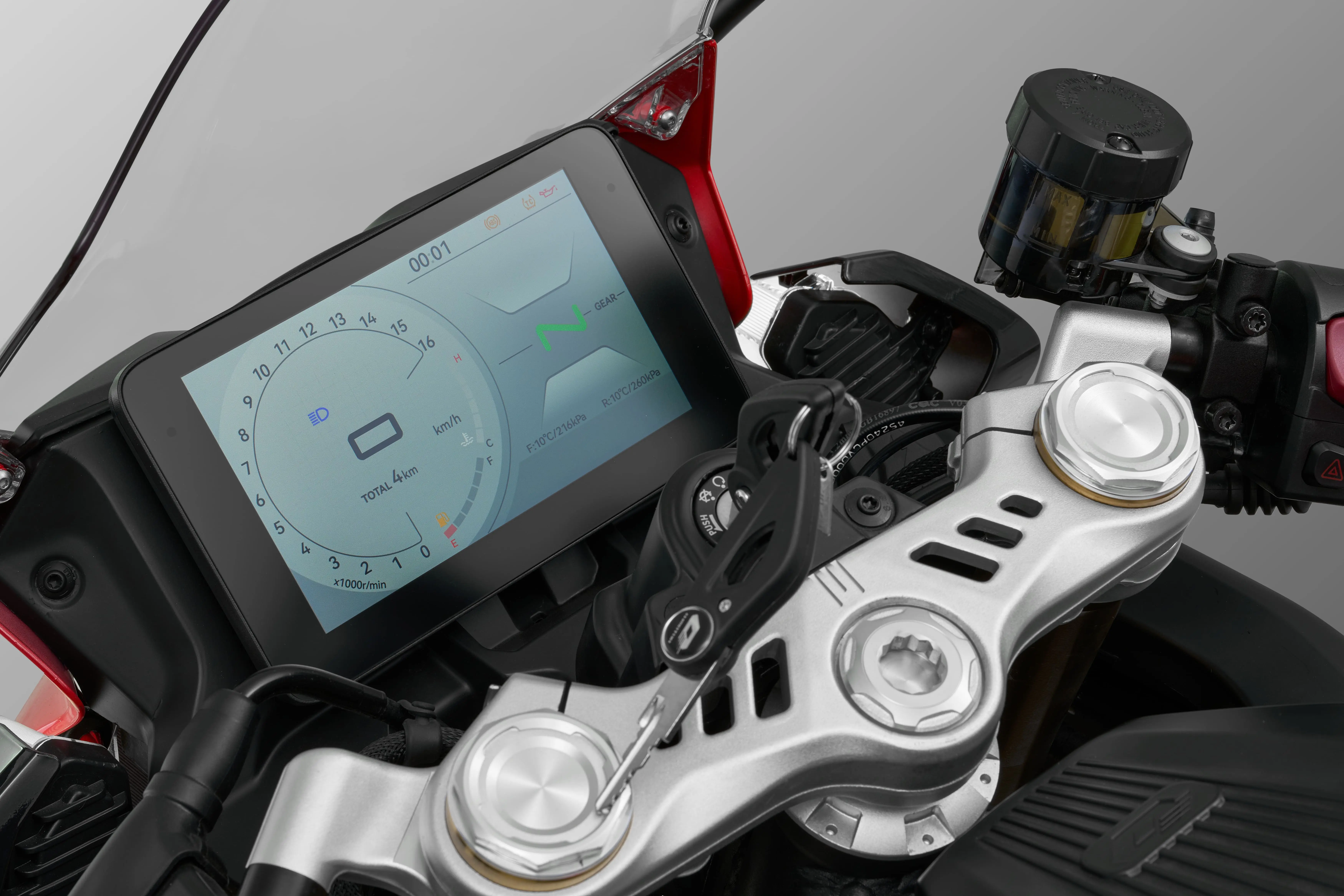- ПРИБОРЫ. 7-дюймовый TFT-дисплей позволяет синхронизировать мотоцикл с приложением Carbit Ride на смартфоне и выводить навигационные подсказки на приборную панель.